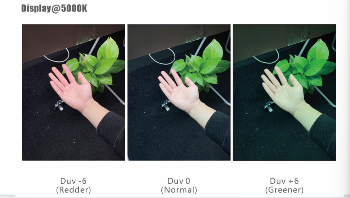 DUV defines how far a light source deviates from the ideal white (Planckian locus):